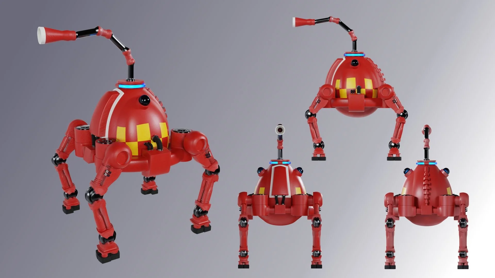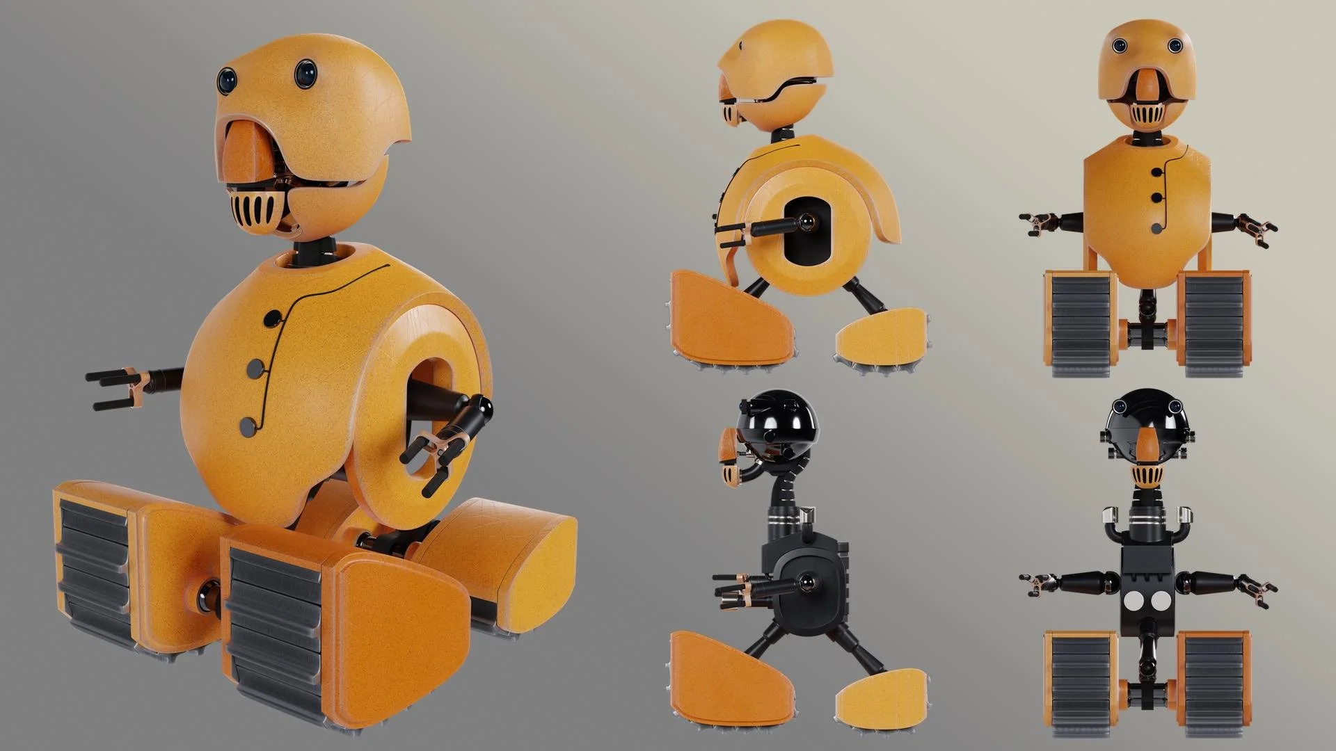 In line with the idea that this and other robots will inhabit a shared universe, after completing a robot, many of the components that went into making it are split apart and added to shared asset file that over time is building up to a wide range of parts that can be re-combined into endless variations of robots.